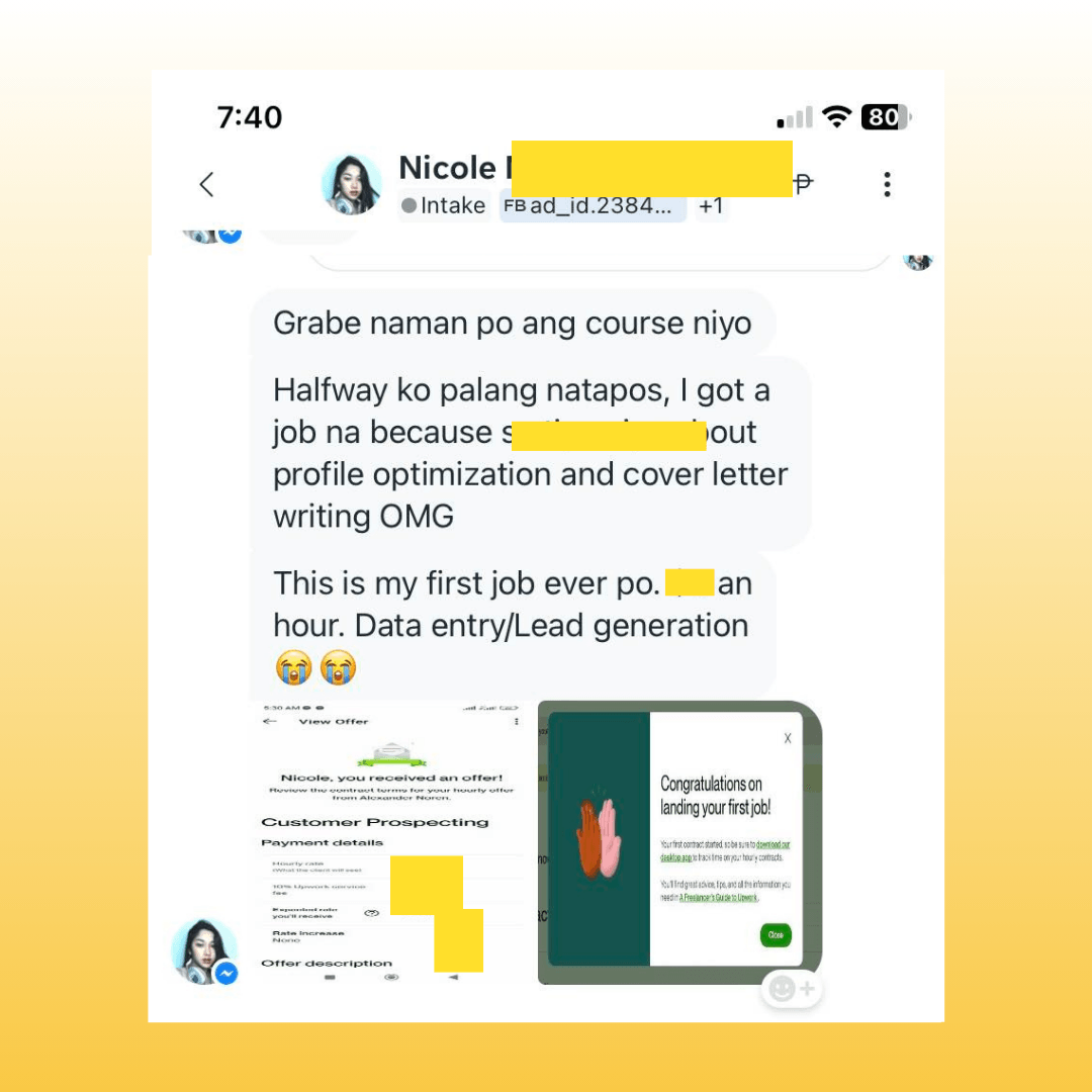 The start wasn’t easy. She dealt with scam clients, rejected proposals, and many challenges. But after a few months, she landed her first full-time client, an Amazon seller. From there, she expanded her skills and began working as a social media manager.